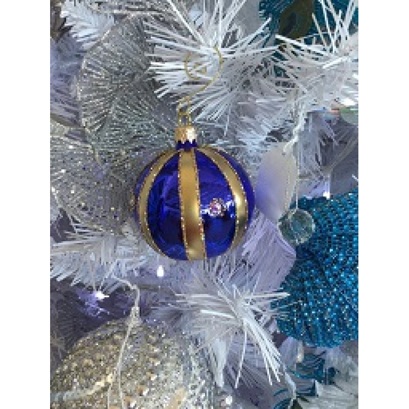 BLUE & GOLD GLASS BLOWN, HAND PAINTED BAUBLE