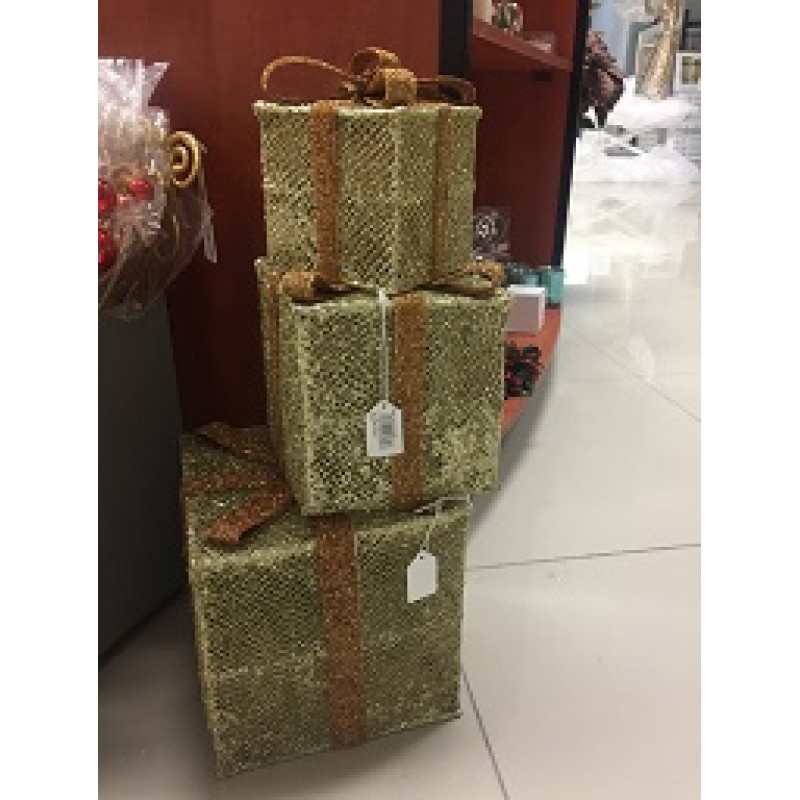 SET OF THREE BOXES IN GOLD GLITTER WITH BOWS ON TOP