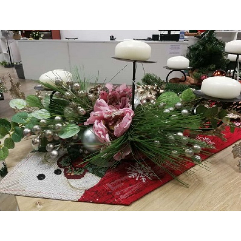 PINK POINSETTIA 3 CANDLE HOLDER