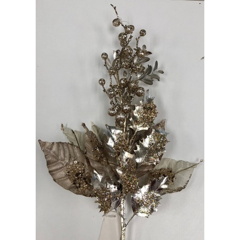 50CM GOLD GLITTER BERRIES AND LEAVES SPRAY