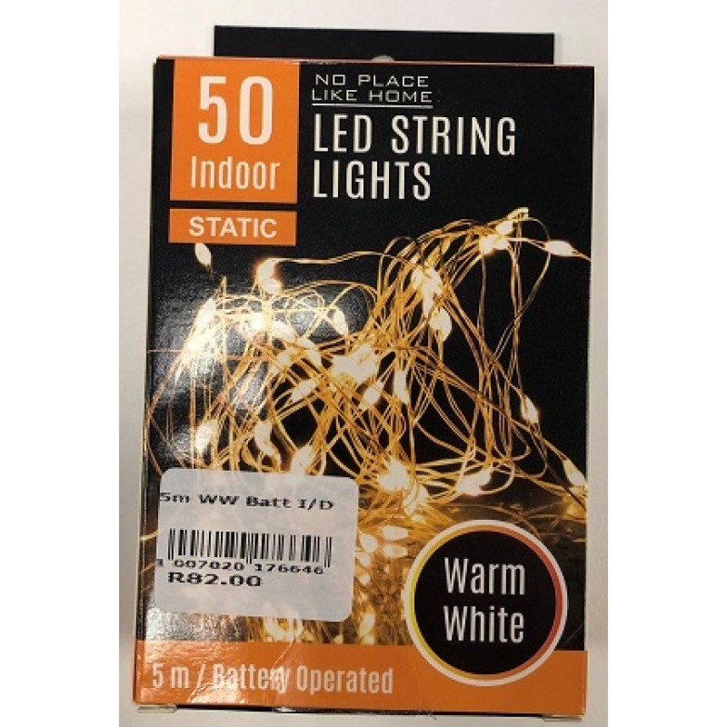 5 METER INDOOR LED STRING LIGHTS WARM WHITE 50 BULBS BATTERY OPERATED (3XAA) ONLINE