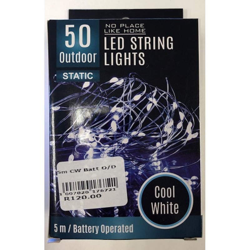 5 METERS OUT DOORS LED STRING LIGHTS COOL WHITE 50 BULBS BATTERY OPERATED (3XAA) ON LINE